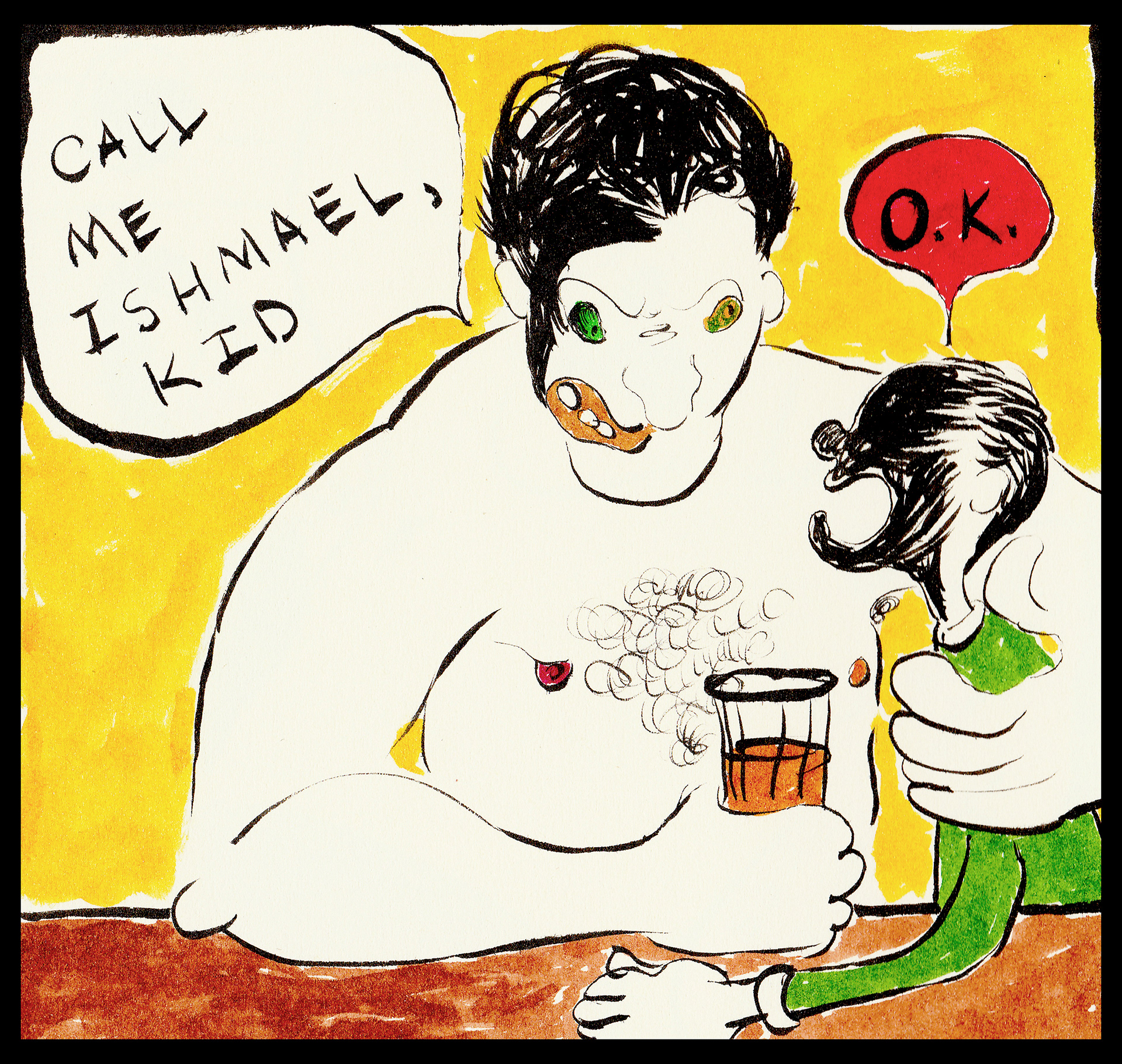 A playful reimagining of Melville's classic text through ink and brush pen.