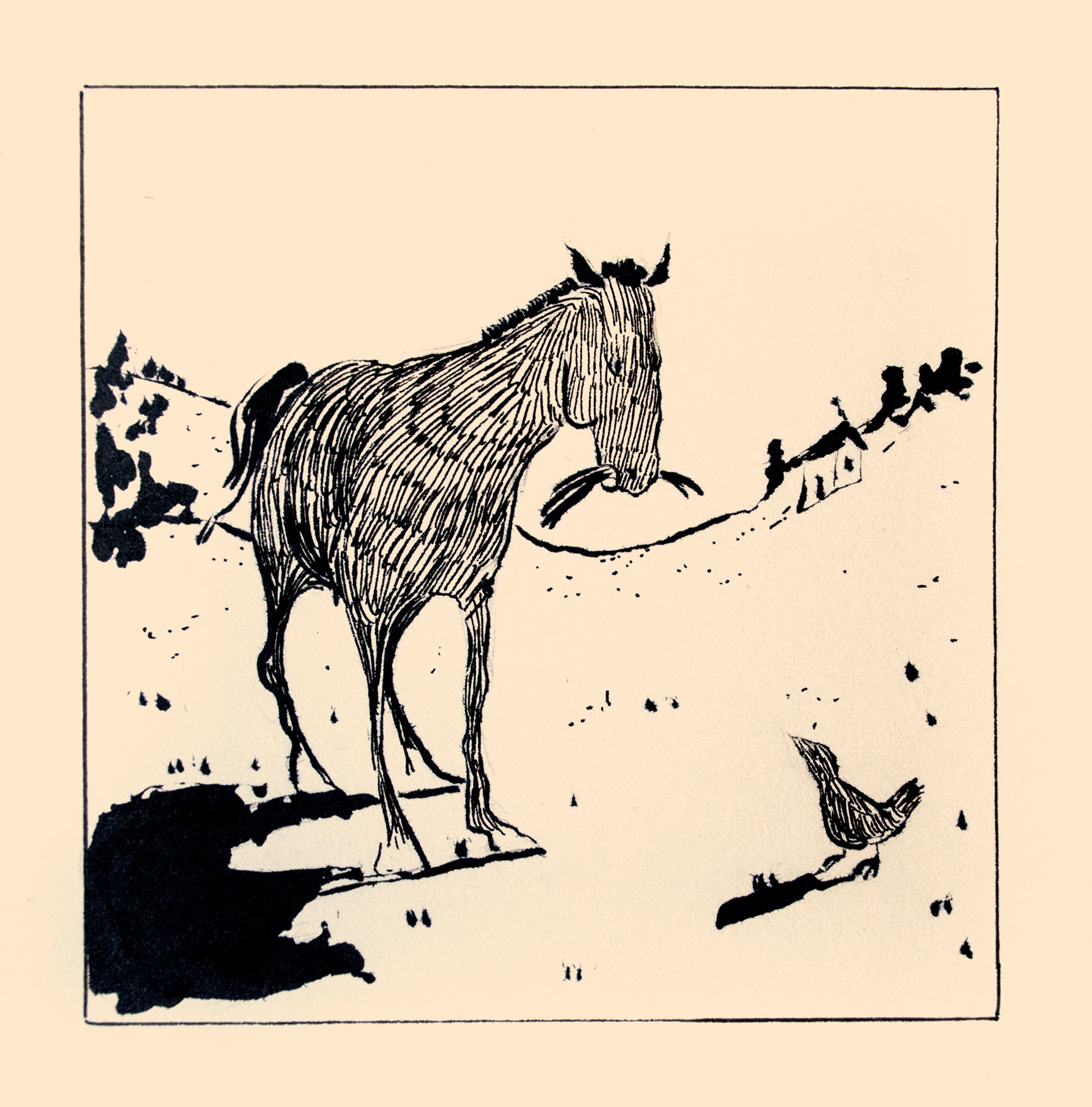 A few selected pages from the children's book-in-progress, "Walt the Wandering Horse"